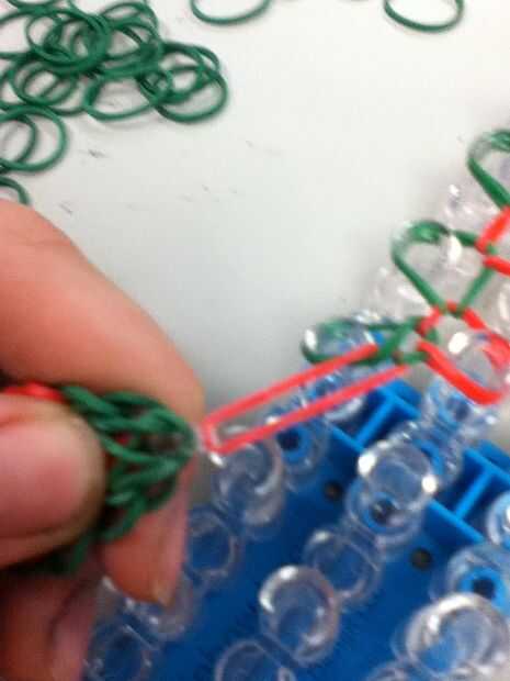 Paso 1: Configuración de telar Configurar su telar para que las filas están en forma de "v".Paso 2: bandas Toma una banda de color y toma de la clavija de la parte inferior y estirar hasta el beg justo encima de él. Lo mismo en todas las clavija