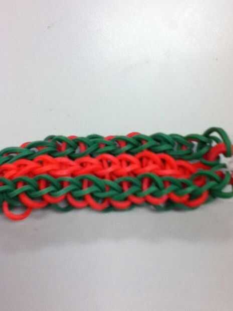 este patrón es muy fácil creo. Básicamente sólo repite sí mismo. Su un poco más gruesa que la pulsera de telar solo arco iris.Usted necesitará• arco iris telar (o cualquier otro telar)• gomas• un gancho• C-clip o pinza S(Quizá quieras tenerlo en una