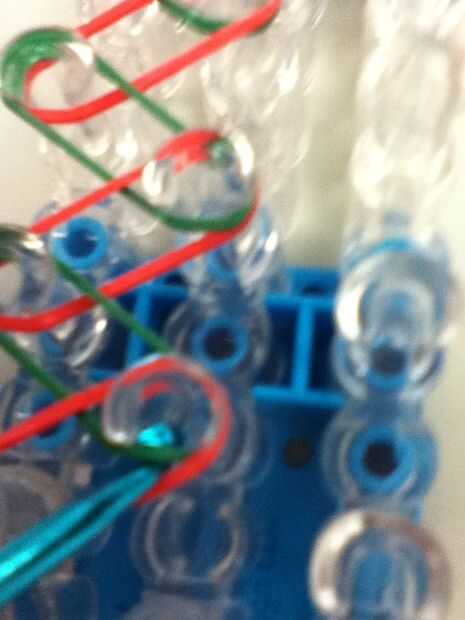 Espero que funcione para usted!Paso 1: Paso 1: reunir su equipoSe necesita:-un telar-12 bandas azul-12 bandas verdes-12 bandas púrpura-12 bandas blancas-1 banda acabado blanco-un clip de "s" o "c"Paso 2: Paso 2: colocar las bandasAsegú