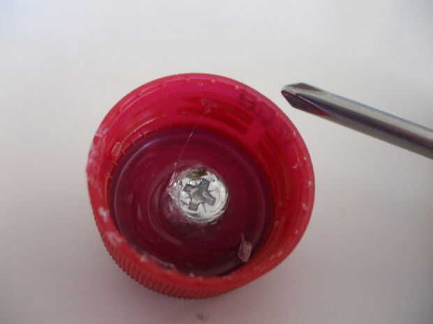 Selle el espacio entre el tornillo y la tapa con el pegamento caliente