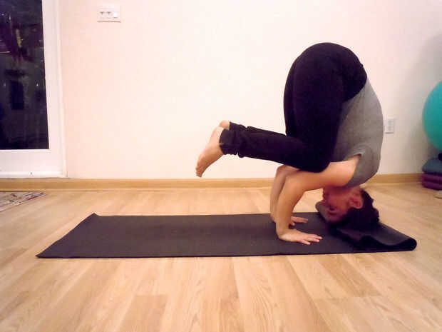 Ya tienes tu base de trípode set, ahora enderezar las piernas y caminar los pies lo más cerca que puede a su cara como usted pueda. Use los codos como un "taburete de paso a paso" y apuntalar sus espinillas en los brazos.