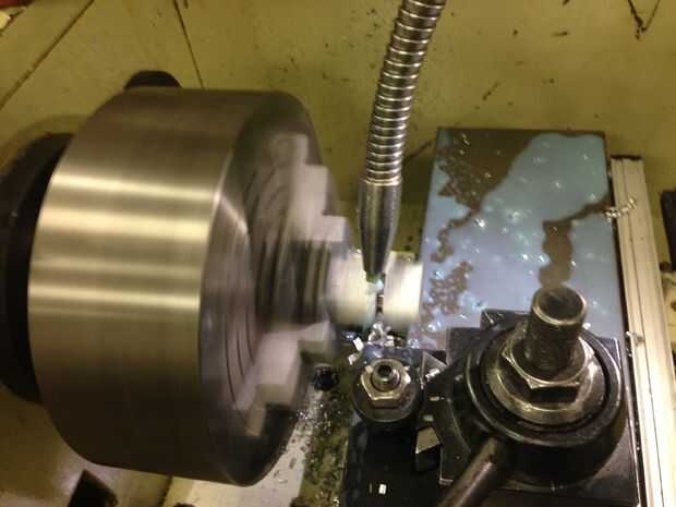 Ahora cambiar a una herramienta de corte derecha y utilizar frente a cortes para que el metal alrededor de la manija con la misma longitud. Si usted quiere un cartabón leve de la parte superior de su trompo, ángulo el corte demasiado ligeramente a la derecha.