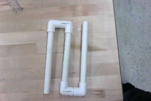 Lista de materiales: -4, conexiones de 90 grados -2, 9 pulgadas piezas de tubo de PVC de -1, 8 pulgadas pedazo de tubo de PVC -2, 1 pulgada pedazos de tubo de PVC