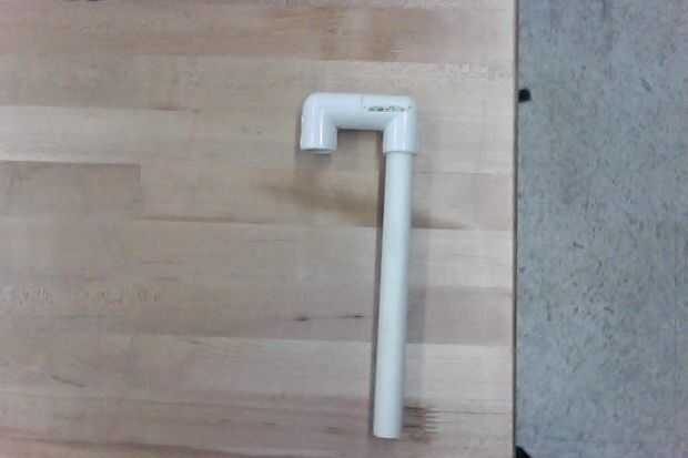 Conectar una de sus piezas de una pulgada de tubo de PVC para el extremo abierto del guarnición que se une a la pieza de nueve pulgadas de tubo de PVC de 90 grados. Después de esto, coloque otro 90 grados a la pieza de una pulgada de tubo de PVC. Debe encajar juntos para que el tubo de PVC de una pulgada no es visible. Una pulgada tubo de PVC está ahí para conectar las dos conexiones entre sí.
