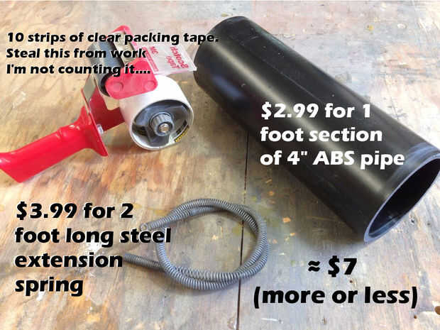 1. comenzar con una sección de 12 pulgadas de tubo ABS. Fue el más grande que pude encontrar en el as local 4" de diámetro ($3), pero creo que aún más sería mejor.
