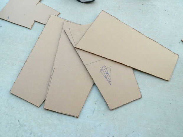 Consulte el diagrama en el paso 1 de cómo grabar correctamente las piezas juntos. Recuerda a la cinta en el interior y el exterior para tener una transición suave entre dos piezas y para reforzar la parte.