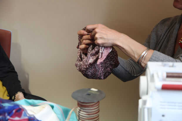 Cómo hacer un turbante no tie-de una vieja bufanda (6 / 7 paso)