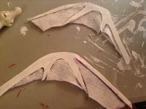 Por esta parte, caliente pegamento el fieltro dentro de la parte vacía de la web de las alas de espuma. Hacerlo en ambas alas.