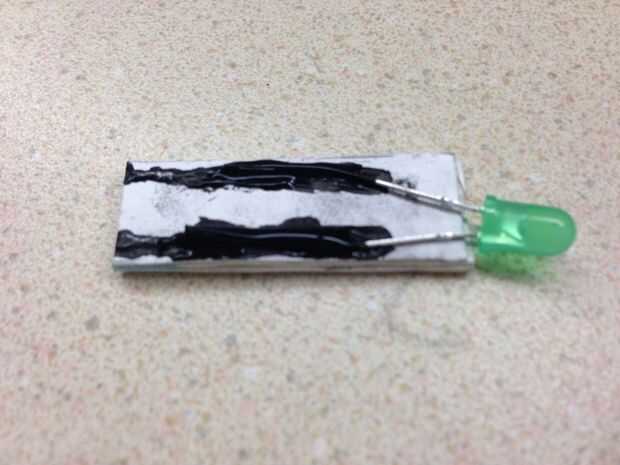 Poner el LED en la parte superior las dos líneas y poner más pintura desnuda para "pegamento" abajo.
