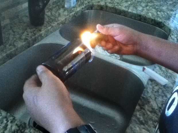 aprender a hacer vasos para beber de botellas usadas de cerveza o botellas de vino.  Todo lo que necesita es alguna cadena, acetona, agua y hielo, encendedor y una superficie no inflamable para trabajar.