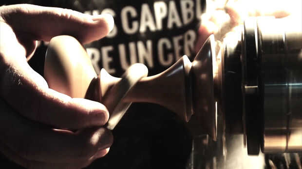 Con el escoplo, separar la Copa de la sección de base que se ha quedado atascado en el mandril. Si no tienes un escoplo, use una sierra de mano o sierra para metales (parada el torno antes de hacerlo!) o desmontar la pieza y utilizar una sierra de cinta.