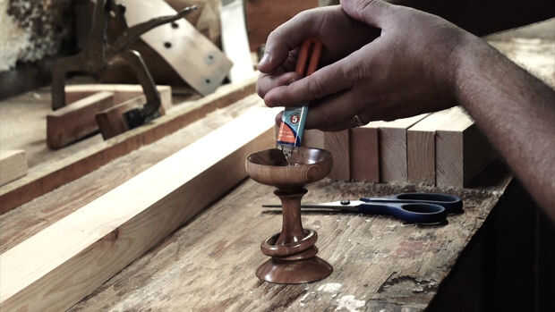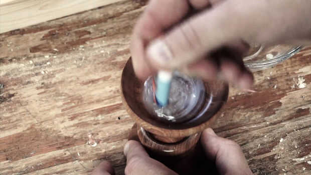 Poner pegamento en la parte superior de su copa de bienvenida el florero de cristal. Usé pegamento Epoxy, pero pegamento caliente puede funcionar así.