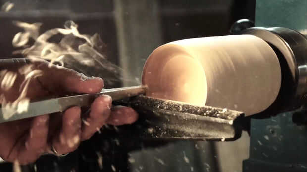 Utilizando el cincel ahuecamiento, hacen una forma de tazón al final del espacio en blanco. Desea que la forma para que coincida con el fondo de su vaso lo más cerca posible, pero no es necesario un ajuste exacto (el vidrio se asegurará con el epóxido más adelante). Usted puede chequear el ajuste parar el torno y el vidrio, pero no tome el pedazo de mandril!