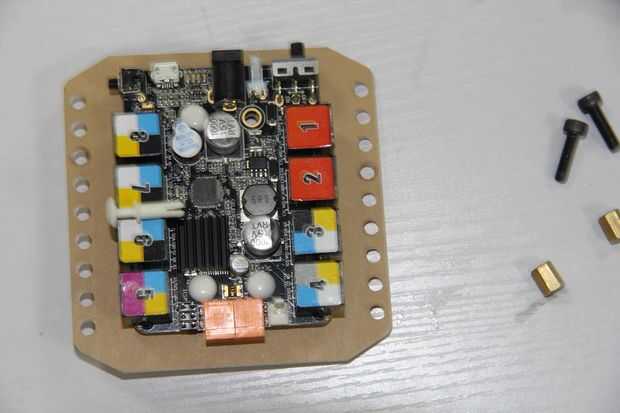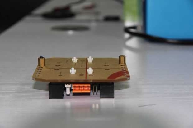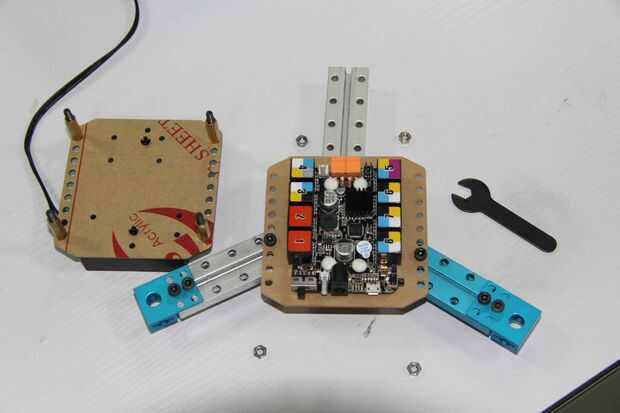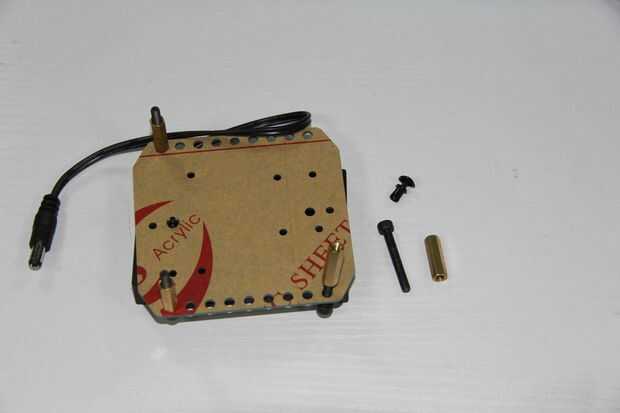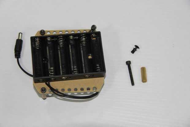 Poner en el soporte de la batería con el soporte de la batería. Entonces puede utilizar algún remache plástico para estabilizar la Junta MeBase antes de ponerlos juntos. Posteriormente puede instalar este soporte de batería y MeBase tablero para el chasis.