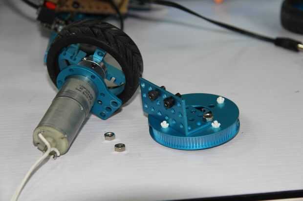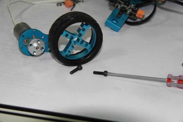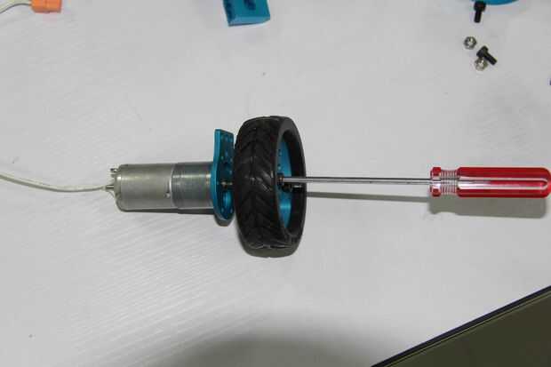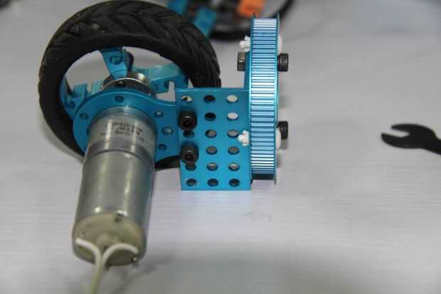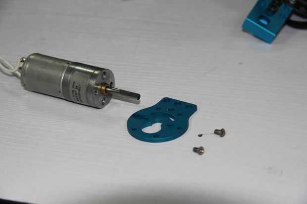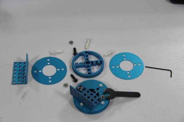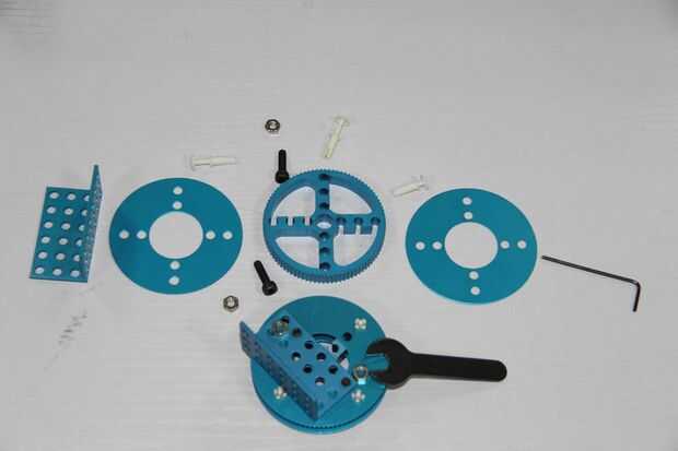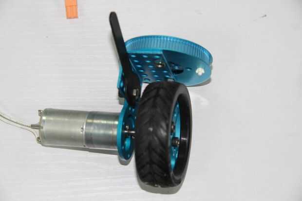 En primer lugar, usted necesita armar el promotor de la DC y el soporte del motor. Y luego pones en el conector del eje antes de instalar el nivel en el. Puede hacer un eje de rotación mediante la conexión de la rebanada de polea dentada y la polea de sincronismo (90T). Por último, se conectan intermedio y el eje. , Pero recuerde, usted necesita hacer dos ruedas en este paso.