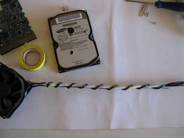 3. Enrolle el alambre eléctrico terrenos alrededor del ventilador. Esto evitará que el ventilador de desplazamiento izquierda o derecha.