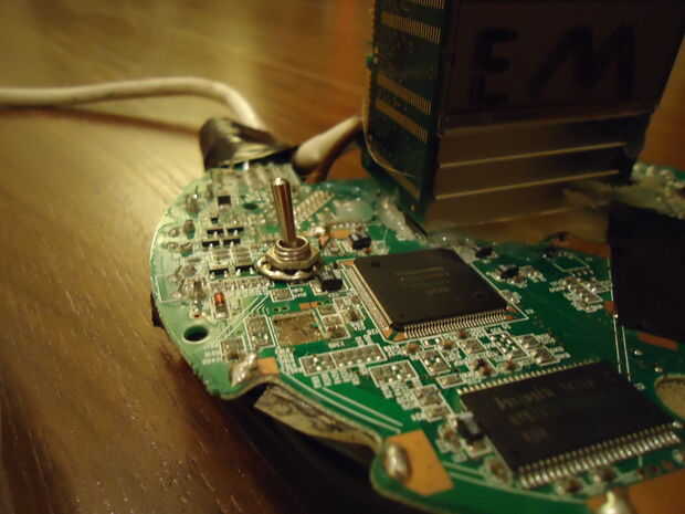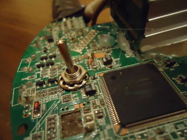 Es el momento de instalar el interruptor... Afortunadamente bastante mi circuito tenía un agujero exactamente el tamaño perfecto para el interruptor de ajuste.