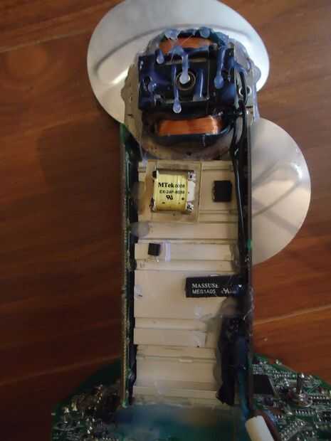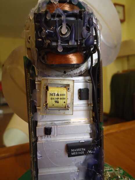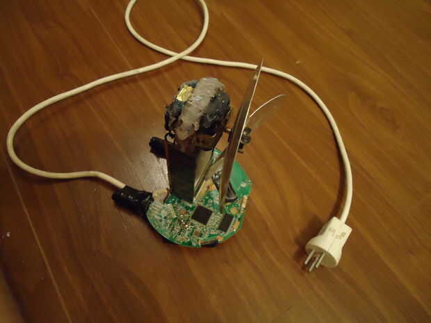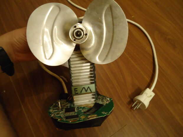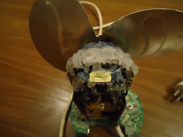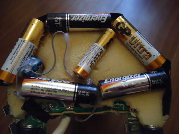 Ahora usted puede notar que el ventilador es demasiado fuerte y se caiga con todo, así que pegamento algunas baterías AA en la parte inferior de la placa de circuito.