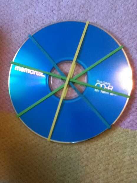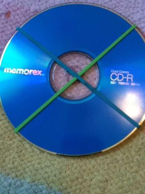 2 poner bandas de goma sobre el CD en la forma y X. Y luego poner los otros 2 en los que una estrella