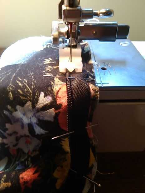 Usted también necesitará utilizar un Prensatelas universal (ver tercera foto) y coser normalmente con el pie para cremalleras para mantener los puntos al lado de la bobina.
