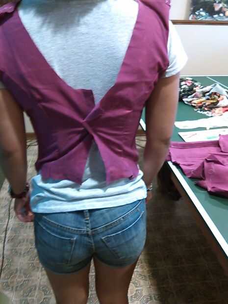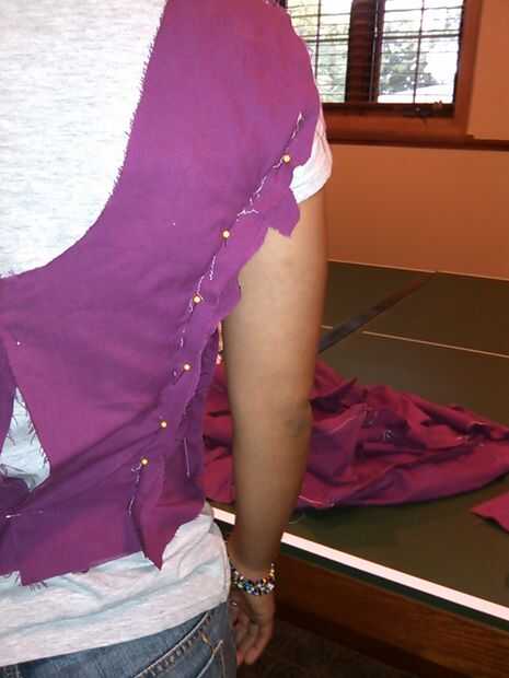 Después de coser a la blusa de la práctica, probar en y ver cómo encaja. Mi primera blusa de práctica (primera imagen) era un tamaño demasiado grande y 12. Decidí probar un tamaño 6 a continuación, y era demasiado pequeño (fotos segunda y terceros). Por último, hice un tamaño 8. Era un poco grande, pero finalmente recurrió a la ayuda de un amigo de la familia que es una costurera sorprendente. Ella me enseñó que está bien fijar el cuerpo mientras que usted está usando. Esa manera, sabes seguro que te cabe! Parecía demasiado fácil. Pero las tres últimas fotos muestran cómo cubrió a la blusa, y cuánto mejor me encaja.