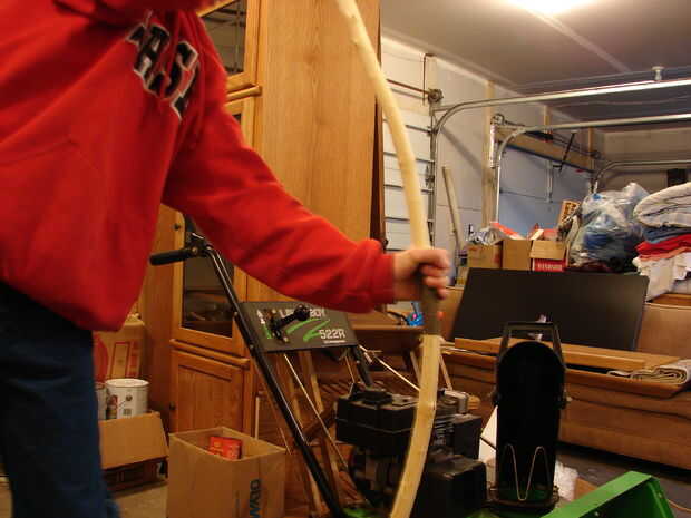 Ahora para determinar la curva natural de la vara. Simplemente uno de los extremos del palillo en la tierra, sin apretarlo, sostenga el otro basta con que puede hacer girar y empujar el mango. Debe girar a mano y revelan de qué manera quiere flex. No meterse con lo que quiere la madera; puede explotar en tu cara y cegarte si lo hace. Ahora marque el lado que hace frente hacia usted cuando usted encuentra el flex y el afeitado de inicio simple de madera en ambas extremidades. NUNCA, nunca, afeitar madera fuera lo que fuera. Tienes que tener una agradable delgada punta disminuyendo lentamente hasta el mango. Cuando crees listo, sólo Ate una cuerda a ambos miembros, soporte en el centro y tire hacia arriba con igual fuerza en ambos lados. Si un lado es más fuerte que la otra, sacar un poco más madera. Una vez que es equilibrado, cadena con cualquier cosa por un minuto y trate de tirar hacia atrás. No debe tomar a increíblemente mucho esfuerzo para tirar hacia atrás a su hueso de la mejilla. Si es demasiado fuerte, tomar más apagado.
