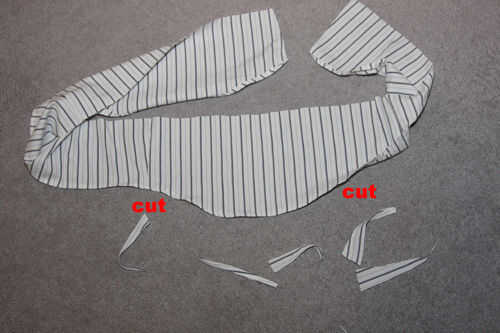 Coser la manga pedazos juntos. Dobladillar el borde que tiene la parte redondeada de los casquillos de la manga en una manera similar a la pieza que encerrado en el paso anterior, cortar el extra para crear un dobladillo similar.