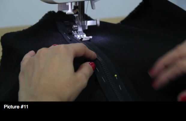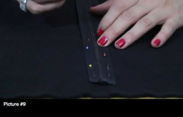 Cuadro #10 y #11 de imagen: Ver cómo poner las clavijas así que usted puede coser la cremallera a un lado del vestido (recordar esto, aún no nos hemos unimos las dos piezas)