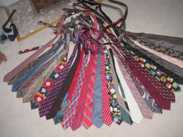 tengo la mayoría de mis lazos de tiendas de segunda mano. Te recomiendo conseguir más de lo que crees que necesitarás. He utilizado unos 30 en mi vestido (soy un tamaño de 4). Usted también necesitará un cinturón. Utilicé un tipo de cinturón de Karate de la Limited.