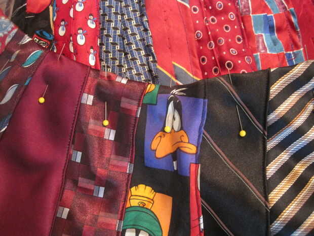 Doblez y Pin: doblar los lazos debajo del vestido donde han marcado longitud B con alfileres rectos. Asegúrese de que los lazos son mentira plana por debajo. La costura doblada en lugar del PIN.