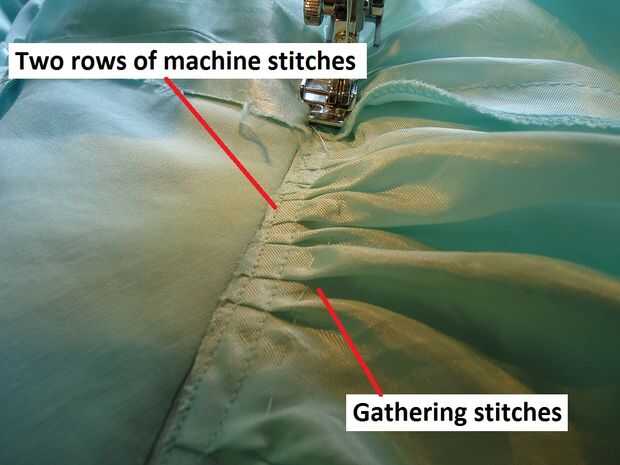 Coser la pieza de revestimiento nuevo dos veces. Este ayuda a mantener los frunces plana para reducir el volumen en la cintura y lo hace más seguro para soportar el peso de la falda.