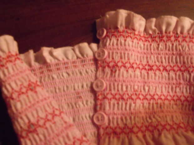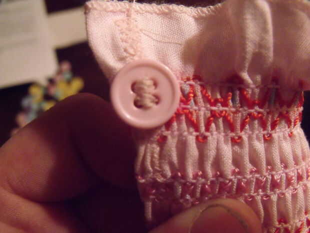 Ahora coser los botones. usé 4 botones cosidos igualmente aparte. luego cosí el lo mejor que pude para que coincida con los botones de los ojales. el orificio superior no resulta como yo quería, pero he aprendido de él.