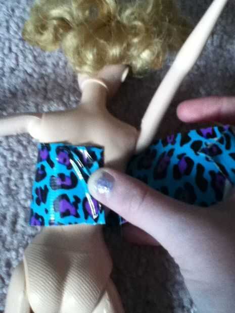 Cómo hacer un vestido de muñeca de cinta de conducto (2 / 6 paso)