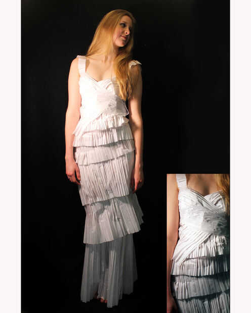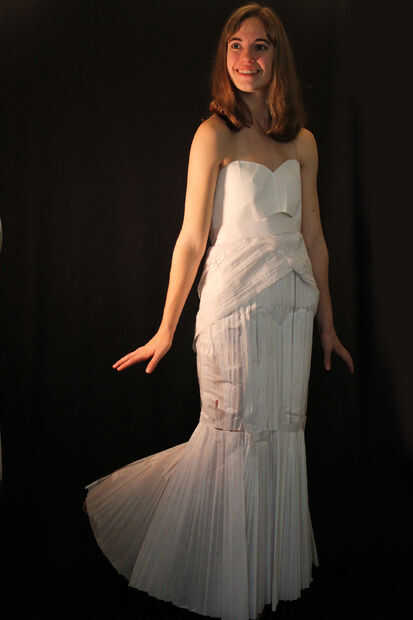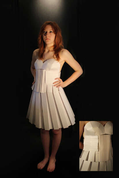 Hice estos vestidos para mi concentración de arte 3D AP y me encantan porque le dan tanta libertad para explorar sin las dificultades de la tela. También requieren suministros mínimos. Al hacer esto, no tenía absolutamente ni idea de lo que estaba haciendo, pero es bastante simple crear estas prendas de vestir. Mi inspiración vino de los efectos de luz y sombra, y el episodio de Project Runway donde hicieron el periódico vestidos.