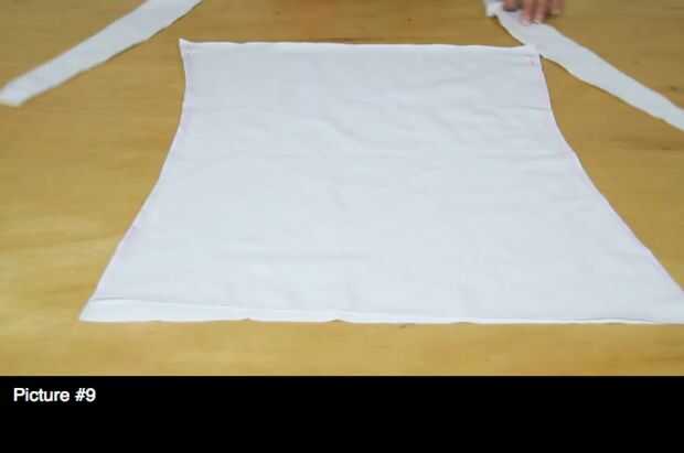 #9 y #10 del cuadro de la imagen: Luego cortar la tela excedente, hacer un dobladillo en la parte superior