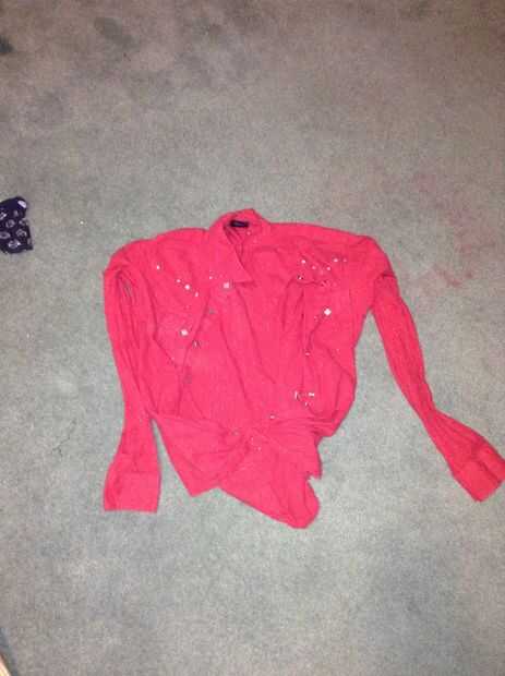 Levantarse una camisa de manga larga que los botones y atar la parte inferior de la camisa hasta donde están los botones. Atar en un no