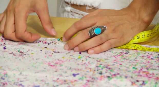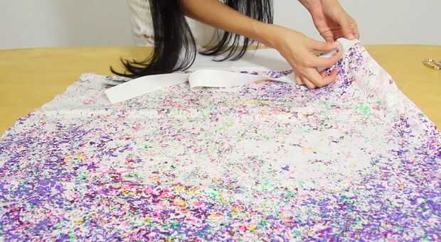 - Doblar a la tela para esta parte. Luego doblar otra vez la longitud que desee para el volante.