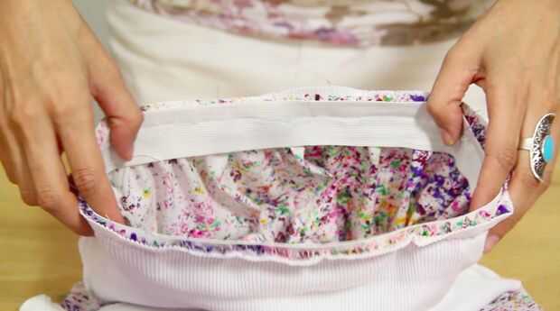 - Es hora de coser el elástico. Elegir un elástico ancho por esta parte. Pin el elástico y coser con cuidado! :)