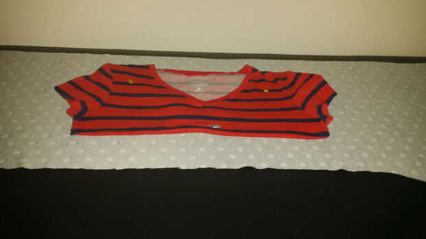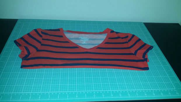 3. Coloque el lado bonito de tela hacia abajo y coloque la camisa en la parte superior.