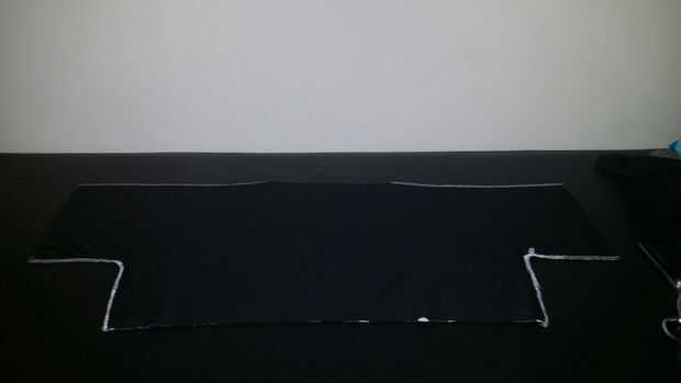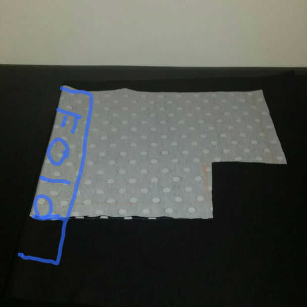 5. ahora dobla su sólido de la tela por la mitad (mal de la tela hacia usted). A continuación doblar la pieza que sólo se cortan por la mitad. Coloque sobre la tela y corte alrededor. Margen de costura extra no es necesario. Tienes dos piezas.