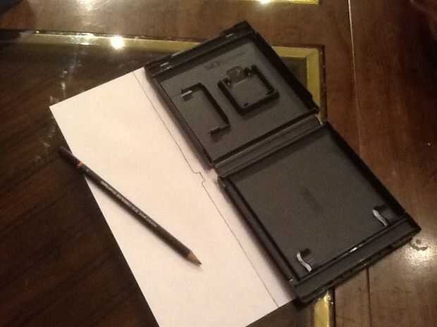 Ponga su caso en un extremo de un pice de papel blanco y traza su forma en el revestimiento del lado izquierdo, como la foto de arriba.