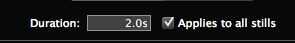 Después de subir tus fotos, ir a la esquina inferior izquierda de la primera diapositiva y haga clic en el botón azul. Luego ir a ajustes de Clip. Ajustar la duración de cada foto. Para que sea más rápido, hacerlo se aplican a todos los fotogramas para que no tengas que hacer cada uno individualmente.