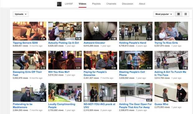 El género próximo hacia abajo de la escalera de la línea de la cámara oculta es experimentos sociales. Popularizado por el LAHWF, que ahora mismo tiene 1.570.532 de suscriptores (queda mucho!). Estos videos torpes son sólo eso, torpe. Realmente no burlan de las personas que interactúa con, pero ponerlos en situaciones incómodas. Y cada vez que alguien consigue poner en una situación torpe, esa persona siempre actúa diferente de su persona física. ¿Tal vez un poco más defensivo tal vez un poco más torpe, quien sabe? Estos videos son generalmente aleatorio y si miran videos de top 5 de LAHWF, sólo alrededor de 1, tal vez 2, es (son) realmente torpe, el resto son bastante bonachón y divertido.