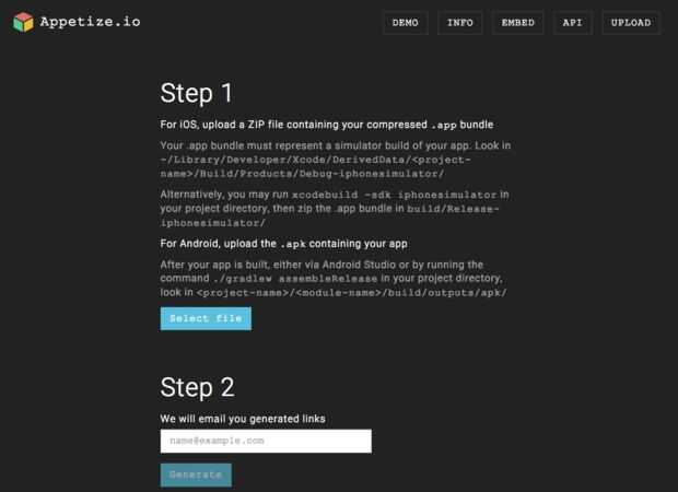 Subir el APK a Appetizer. Una vez que se carga la aplicación, Appetizer enviaremos un enlace para poder ver su aplicación en el navegador.