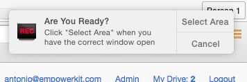 Haga clic en el mensaje superior derecha para seleccionar un área. A continuación, seleccione la pantalla del iPhone de Appetizer. Puede hacer esto haciendo clic y arrastrando para crear un rectángulo en la pantalla.