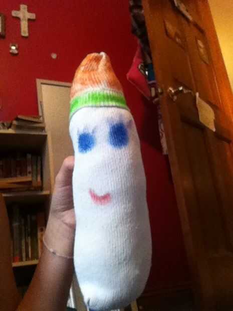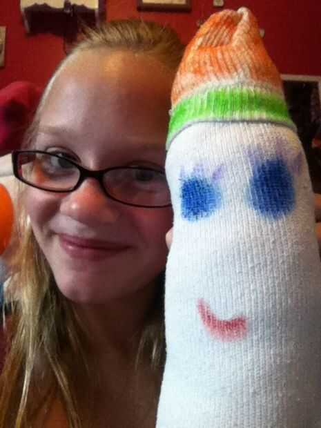 Procede a la coloración vas al sombrero de color y dibujar una cara en el calcetín