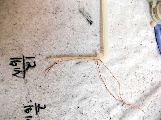Después de tener el alambre trenzado en dos hilos más, tome su soldador y presiona el alambre en el plástico del eje donde gira el ventilador. Asegúrese de hacer referencia el video y fotos del lugar adecuado para ello.