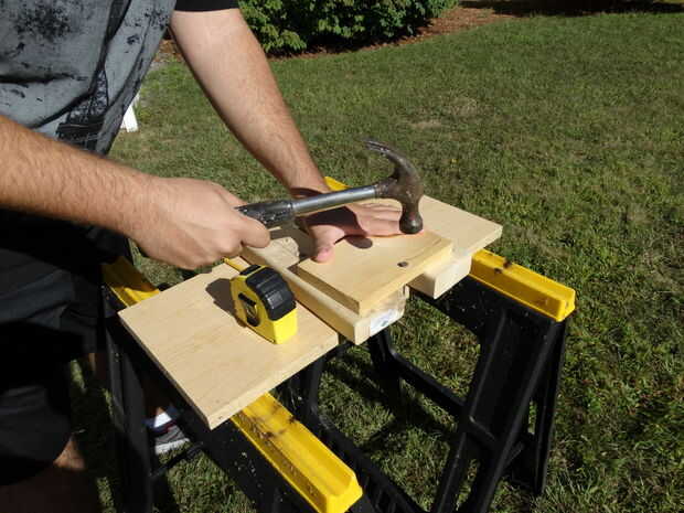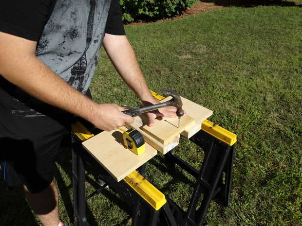 Después de marcar el punto medio en la parte posterior de la Junta, poner un clavo en la marca y mantenerla firme. Luego tomar el martillo y batirlo poco a poco. Una vez que el clavo a través de todo el camino, tenga cuidado al quitarse, o usted podría conseguir un pinchazo desagradable. Asegúrese de que es un clavo nuevo y no oxidados, en caso de toque y cortarse. Vikingos no tenían vacunas tetnis! (PUEDE NECESITAR AYUDA ADULTOS!)