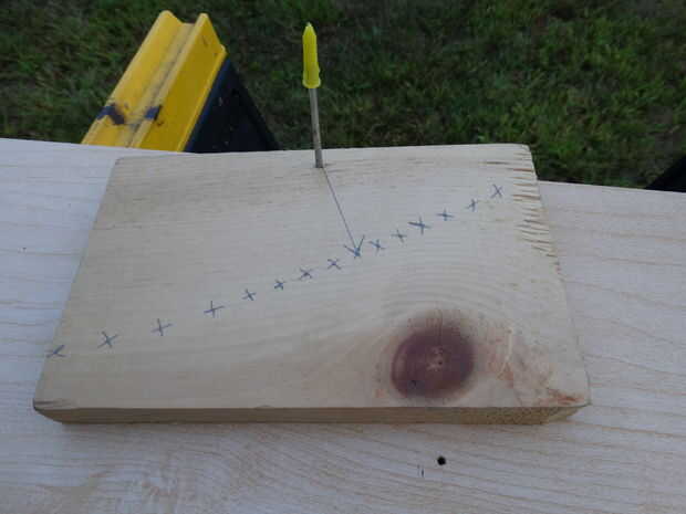 Una vez terminado marcando todos los puntos en el tablero, mides cada uno para averiguar que es lo más cercano. Una vez que encuentre cuál es el más cercano, llamar una hora a ella. Esto se llama una curva de gnomon. En la mía, el punto más cercano, era la marca 7. Variará en todos los casos.