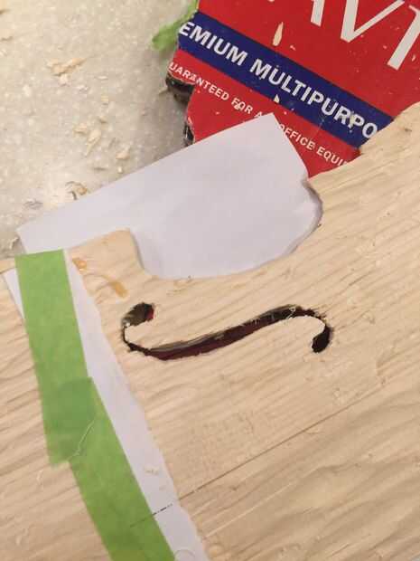 en la parte inferior de la parte superior la plantilla f-agujero en la cinta y cortar con un cuchillo X-ACTO.